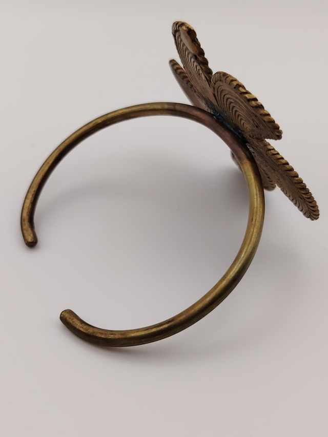 Fabriquée en laiton et entièrement faconné a la main, ce bijou met en lumière un savoir-faire artisanal unique. Célébrez la beauté et la symbolique de la culture africaine avec ce bracelet orné d' une fleur inspirée des motifs Adinkra.