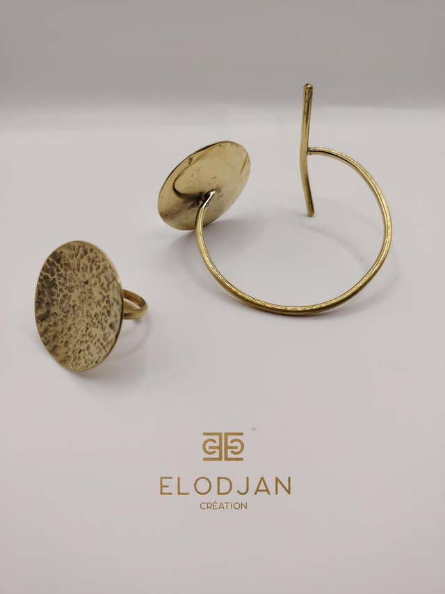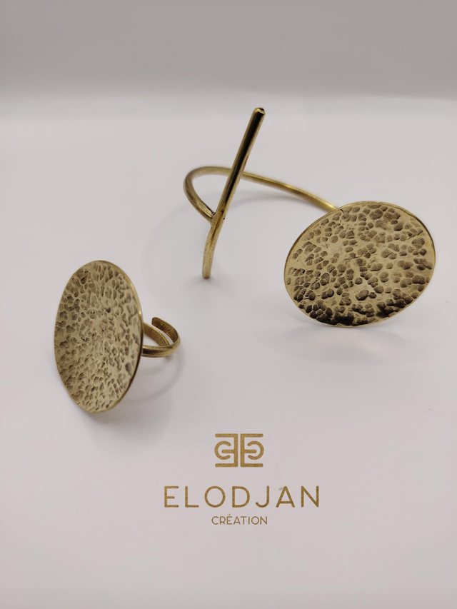 d’une bague ajustable, ornée du même disque martelé, pour un duo parfaitement harmonisé.