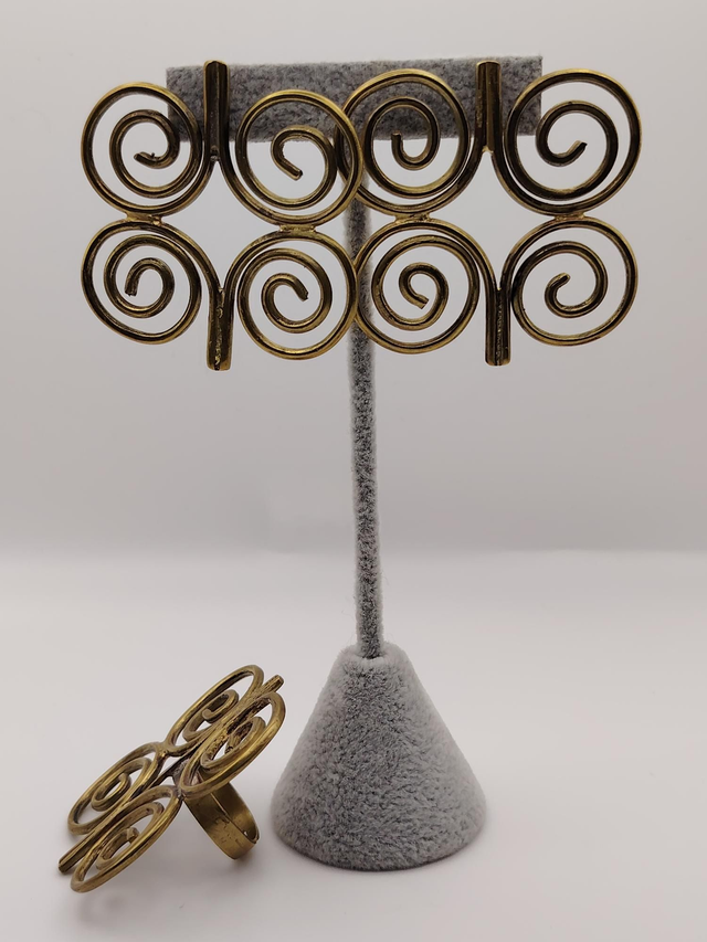 Inspirée des motifs Adinkra d'Afrique de l'ouest, cette parure reprend la puissance symbolique de la spirale. Porter ces boucles d'oreilles et cette bague, c'est s'entourer d'un héritage millénaire. Un bijou qui unit tradition artisanale et élégance contemporaine..